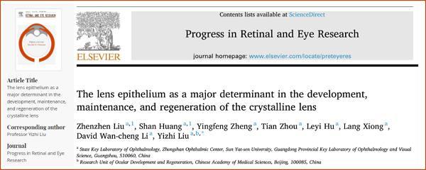 晶状体是眼内透明的双凸透镜状组织,具有将光线聚焦在视网膜的功能。晶状体混浊即白内障,是世界首位致盲原因。目前常用假体(人工晶状体)进行手术替代治疗,但医疗和社会经济成本巨大。让人体晶状体终身保持透明,甚至早期逆转混浊,是防治白内障最理想的方法,也是人类的不懈追求。晶状体上皮细胞是晶状体核心细胞,对它进行干预和调控可能是实现这一目标的有效途径,但既往对它的生物学特性缺乏全面的认识和利用。raybet官网登录入口刘奕志教授基于本团队在此领域的长期工作,从全生命周期的角度,发现并阐述晶状体上皮细胞在晶状体胚胎发育、透明性维持与创伤修复不同过程中的重要作用,为自体细胞介导的组织功能维持和修复疗法提供理论依据,颠覆了白内障临床防治的传统理念,为该领域研究指明了未来方向。文章2022年8月31日以The lens epithelium as a major determinant in the development, maintenance, and regeneration of the crystalline lens为题在眼科最具影响力期刊Progress in Retinal and Eye Research在线发表。