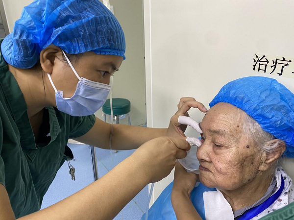 陈薏玲为百岁老人做术前准备(来源:雷竞技最新版下载)