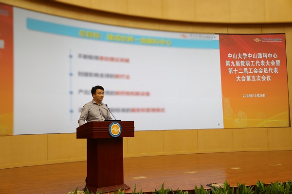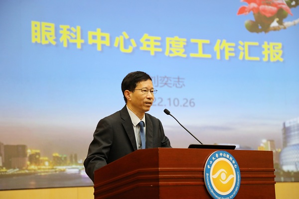 中心主任、医院院长刘奕志代表中心行政班子作眼科中心年度工作报告。报告高度总结凝练了眼科中心的重点工作,肯定了眼科中心全体教职工同心同向、攻坚克难,在疫情防控、医疗服务、人才培养、学科发展、防盲扶贫、运营管理等方面取得了高质量发展。奋进新征程,建功新时代,报告强调眼科中心全体教职员工要深入学习贯彻党的二十大精神,践行“把保障人民健康放在优先发展的战略位置”的理念,将党和国家的发展战略融入眼科中心的具体实践中去。