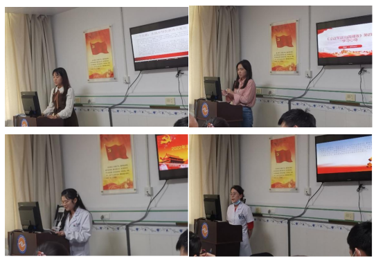 会上,四位入党积极分子分别分享了自己学习《习近平谈治国理政》第四卷的心得体会。况君婷同学结合自身作为医学生的实际,讲述了在疫情防控大环境下,我们党坚持把保障和改善民生、佑护人民生命和健康、科学统筹疫情防控和经济社会发展等放在首位,充分彰显了中国共产党领导和中国特色社会主义制度的显著优势。茹柯耶同学着重分享了自己学习《习近平谈治国理政》第四卷的方法,只有系统地、历史地学,努力做到学用相结合,理论联系实际地学习,才能真正做到学以致用、用以促学、学用相长。李艳玲分享了我们党始终坚持以人民为中心的发展思想,无论国内外局势如何演变,把人民放在心中最高位置永远是贯穿其中的鲜明主题。何成杰同学则分享了她关于“一个主题、两个大局、三大逻辑、四大之问”的学习心得。随后,支部成员进行了热烈的讨论与学习。
