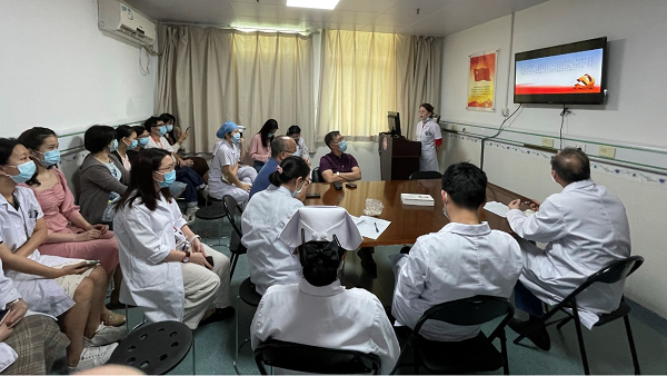 2022年10月14日,临床师生第五党支部在眼外伤科日间病房会议室开展组织生活,集中学习《习近平谈治国理政》第四卷及开展2022年纪律教育学习月活动。会议由临床师生第五党支部书记袁钊辉副教授主持,全体党员、预备党员及入党积极分子等参加。